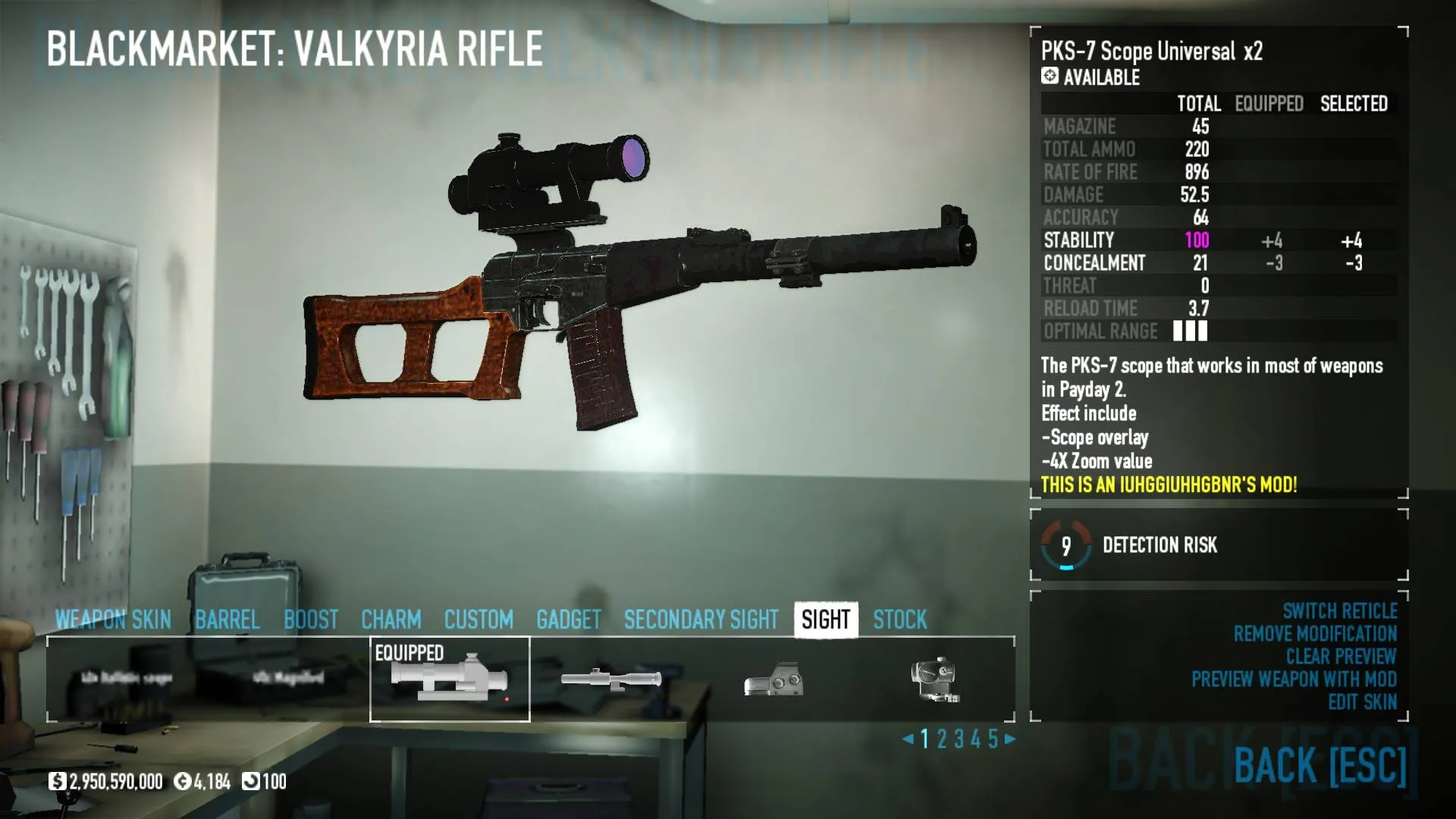 PKS-7 Scope Universal is a scope with build-in scope overlay and high zoom power PKS-7 Scope Universal Can be use in most of weapons in payday 2