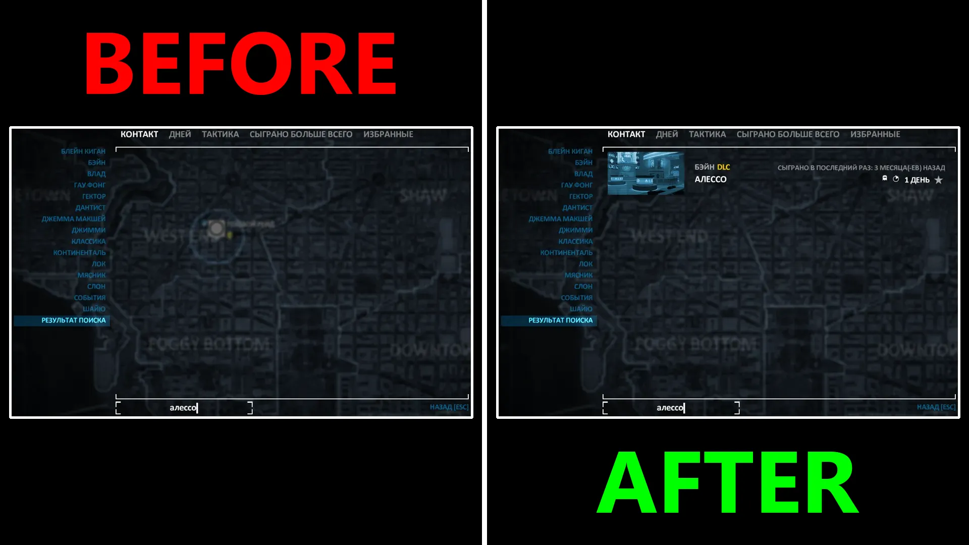 Also, in some languages (for example, Russian), the search in the contracts and achievements menu is case-sensitive. This mod fixes this. You no longer need to capitalize the name.